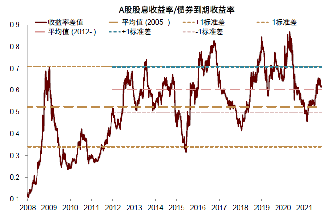 图表55:股债相对吸引力模型显示股票的相对吸引力优于债券