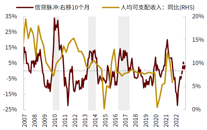 图表25:信贷脉冲领先城镇居民收入10个月左右