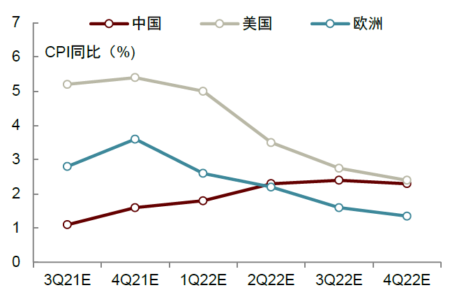 根据彭博经济学家一致预期,2022年美国、欧洲的CPI通胀水平将逐步回落至2.5%以下。中金宏观组预测2022年中国PPI通胀降至4.0%,CPI将升至1.9%,整体通胀风险可控。
