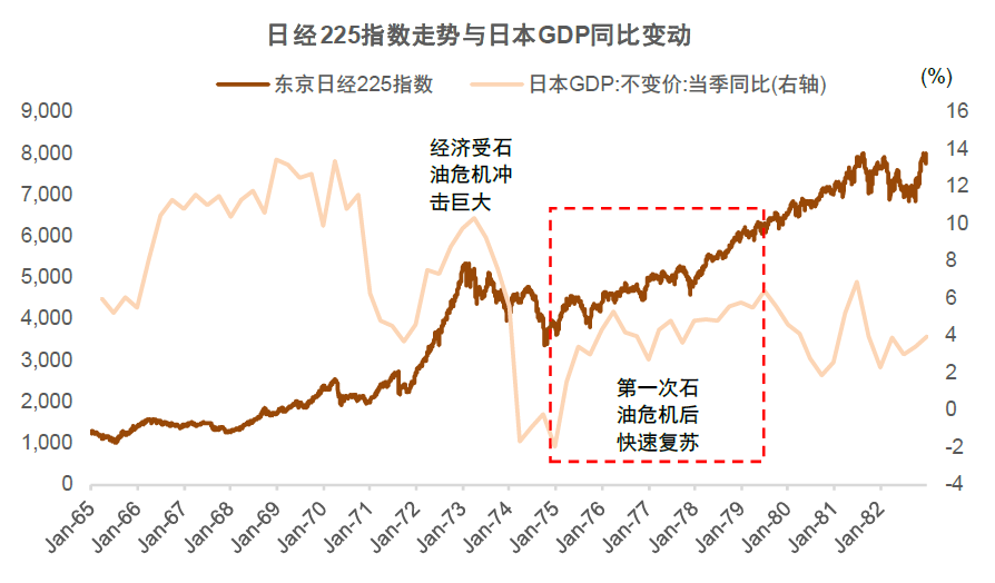 日本出色地降低对石油的依赖,使其在第一次石油危机之后主要发达国家中经济表现最好,而日本股市也成为1970年代发达国家股市中表现最好的一个。日本的经验也突出了当前“双碳”目标的重要意义,摆脱对传统能源的依赖可以缓解能源供应瓶颈对经济增长的约束,同时也启示全球经济重返可持续的平稳增长轨道中,能源效率提高和替代能源开发可能是一个突破口。
