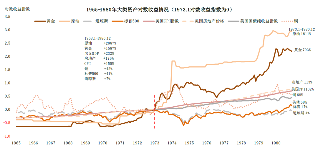 图表:滞胀期间的大类资产特征是实物资产大幅跑赢金融资产,股市表现相对较弱