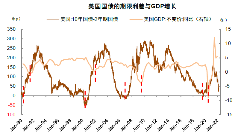 图表:美国的10年与2年国债利差收窄,俄乌地缘风险发生后最小差距仅有20bp