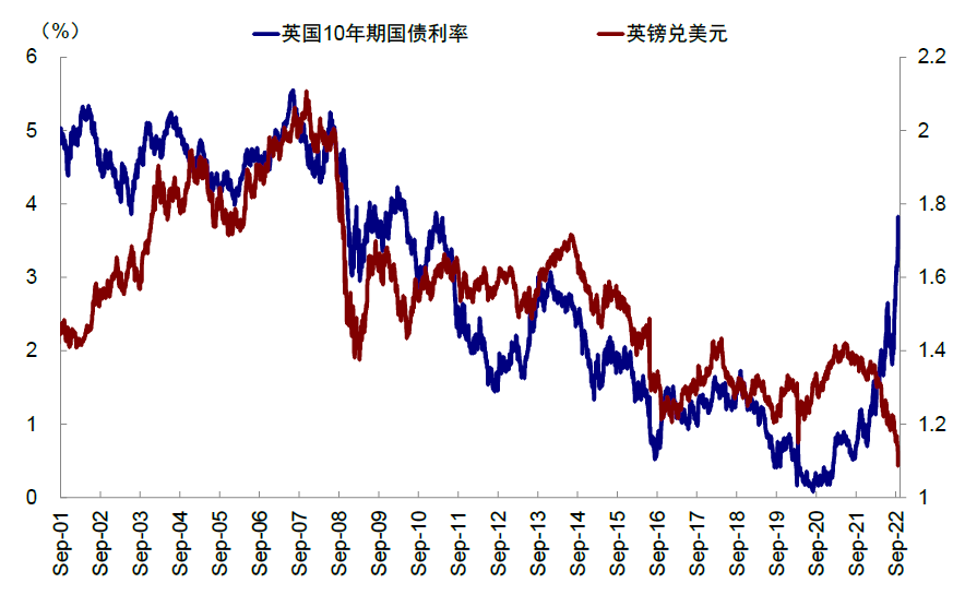 甚至,还出现了非常极端的情形。例如,日本财务省和日央行面对持续贬值的日元进行干预,上次汇率干预还要追溯到2011年海啸后防止日元升值(但是如果是买入型汇率干预支撑日元汇率,则要追溯到1998年亚洲金融危机期间)。同时,英镑对美元汇率出现了罕见的3.7%的大跌,1.08的水平是1985年以来的新低,虽然这是因英国政府推出超预期减税措施所致,但是英国国债利率飙升和英镑贬值这种通常在发达市场较为罕见的组合表明投资者对英国资产信心的受损。