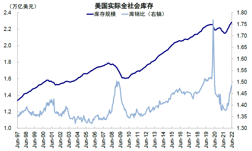 图表:美国实际全社会库存规模已经达到了疫情前水平