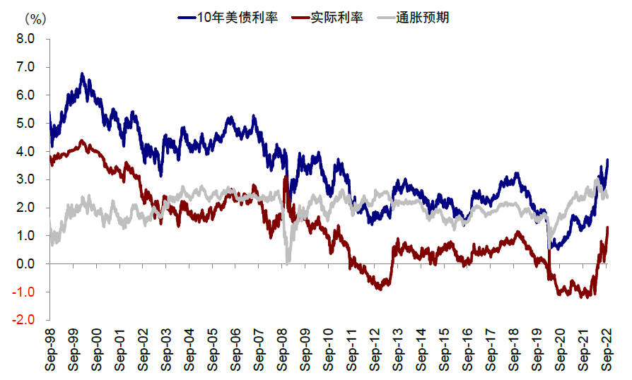 图表:本周美债利率特别是实际利率创出1.3%的2010年4月以来新高