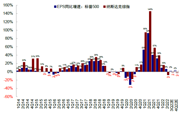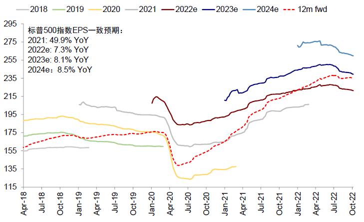 图表:标普500指数2022年EPS一致预期增速7.3%,2023年增速8.1%