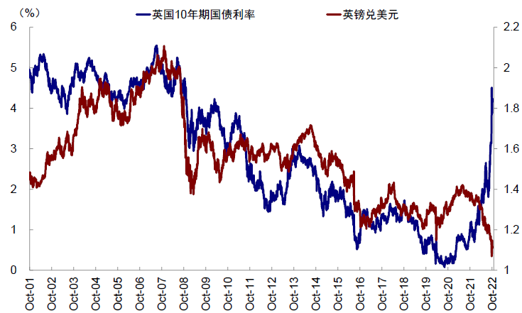 图表:受英国政府意外减税政策影响,英国国债利率大幅飙升和英镑大幅贬值至80年代以来的新低