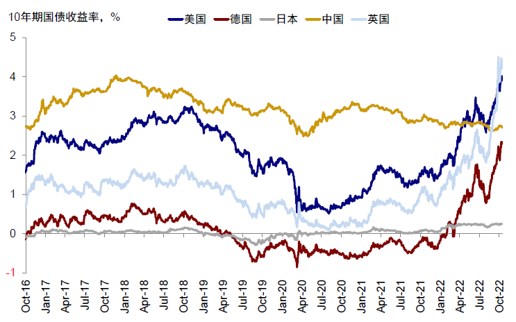 图表:扰动英国养老金的英国国债利率短期内快速上行,10年期一度从9月下旬的3.1%快速抬升至9月末的4.5%