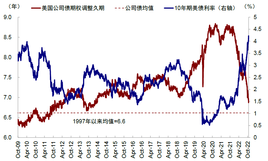 图表:整体美国信用债久期虽有回落但仍处相对高位,使其对利率变化仍比较敏感
