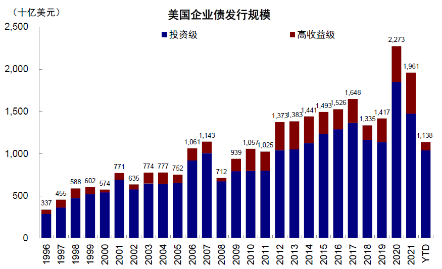 图表:年初至今美国信用债发行规模仅1.1万亿美元,较去年同期回落28%