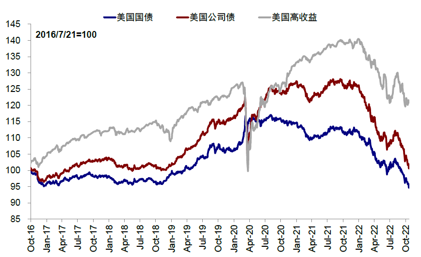 图表:过去一段时间,美国信用债特别是高收益债从高点大跌,明显跑输国债