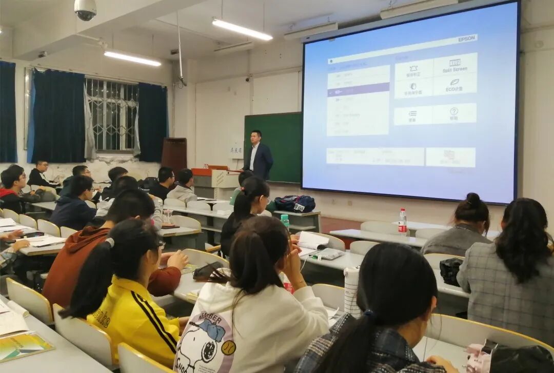 殷老师讲课非常有意思。刚上课的时候,因为电脑坏了正在修理,殷老师不浪费时间,即兴“脱口秀”,吸引了很多同学。以致在换教室之后,坐在前排的同学明显变多了。
