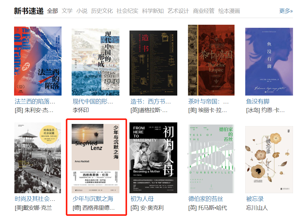 德国作家西格弗里德·伦茨的《少年与沉默之海》一上市,就登上了豆瓣新书速递。小说主人公是一个敏感而忧郁的少年,他经历了家庭的变故,在一个崭新的环境中重新寻找生活的锚点。他在真挚的友情与青涩的爱情中所遭受的误解,他为了突破自身困境所做出的种种努力,正与所有少年的心事相通,这本小说也因此被列入德国中学生必读书目。