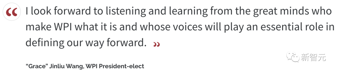 而WPI董事会主席Bill Fitzgerald说:「王博士正是WPI需要的领导者,她会将我们的研究提升到新的水平。」