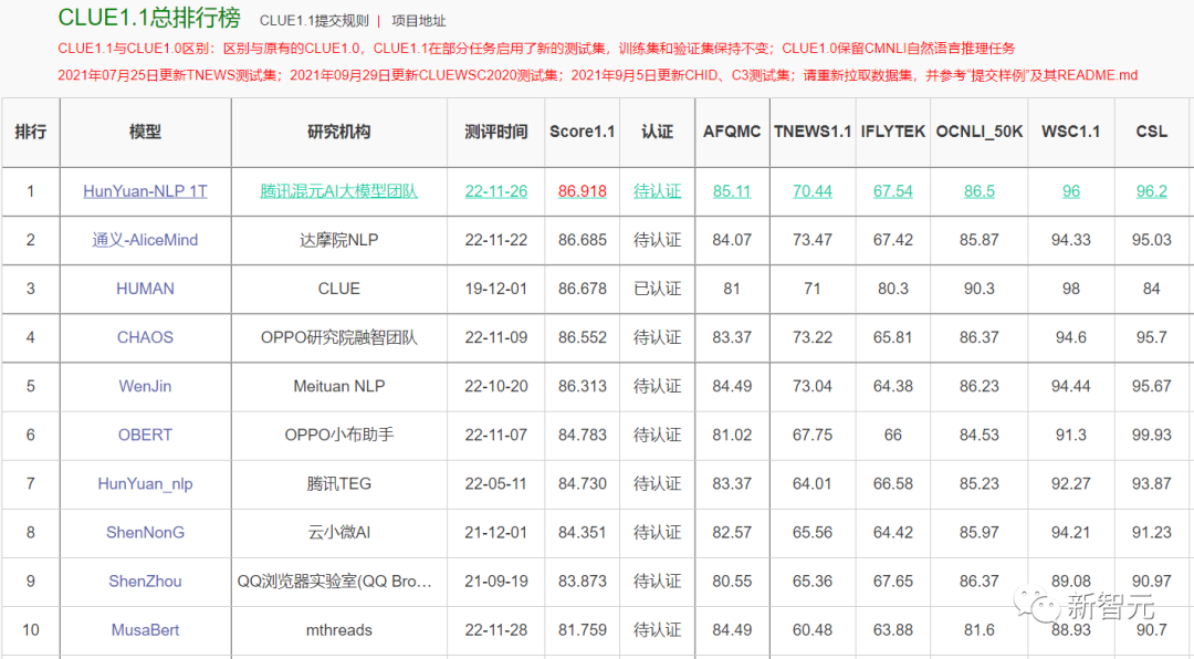 巧合的是,短短4天后,腾讯的「混元AI大模型」在测试中以86.918的高分再次刷新了纪录——这甚至比AliceMind的成绩还要高0.233分。