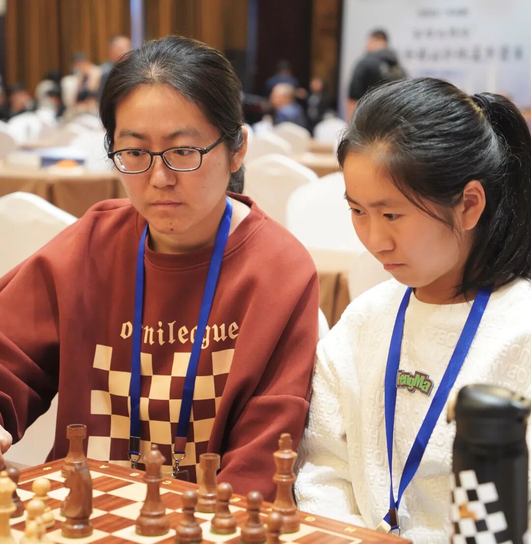 在国际象棋亲子组比赛中,几乎是父子或父女上阵,来自绍兴的朱奕桦和董芯屹是本次比赛唯一由母亲和女儿组成的队伍。“小时候送她去学棋,我也觉得挺有意思,就一块儿跟着学了。”母亲朱奕桦笑着分享,“这次我下的棋大多是被女儿批评的,少数是被表扬的。”女儿董芯屹在一旁飞快地补充:“有一步棋走得很好!”母女二人最终排名第六,相较于奖金,当属无价之宝的是她们携手向着同一个目标前行的这份回忆。