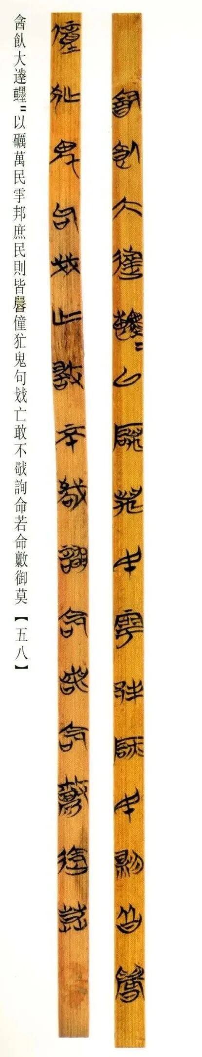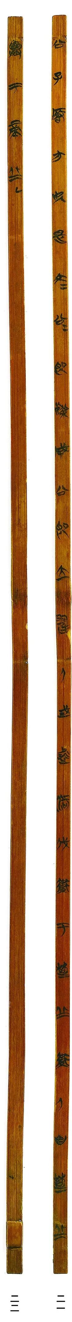 1.脱色。竹简照相前需要进行脱色,因为出土的竹简颜色深浅不一,照相效果不够理想,通过脱色,可以使竹简色泽接近其最初的状态。脱色后大部分竹简色泽变为米黄色,基本上还原了竹简的本来颜色,字迹也变得更加清晰,拍照效采较好。