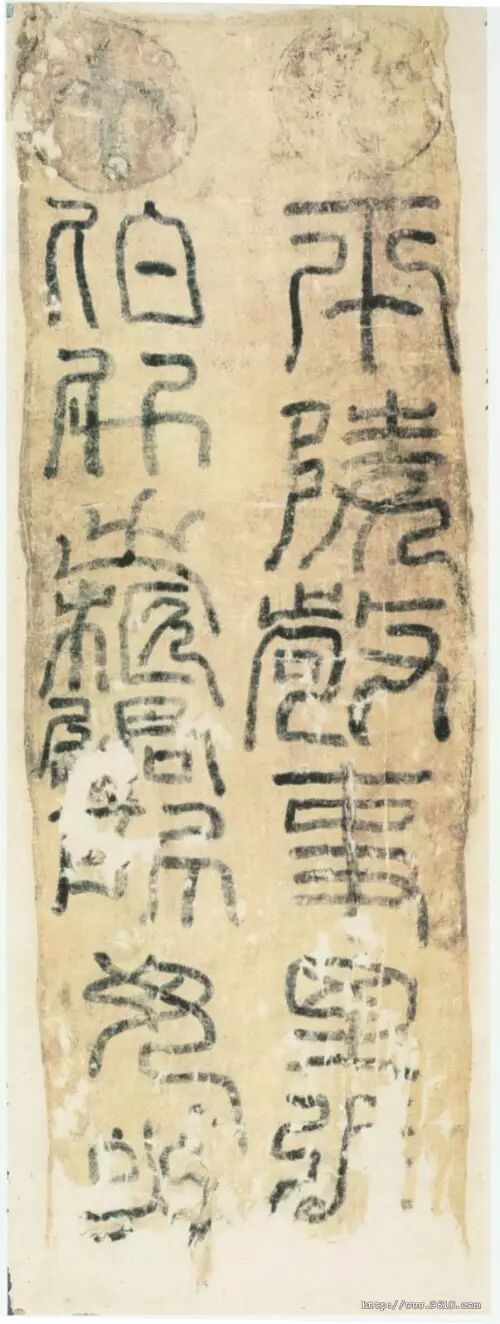 “武威张伯升柩铭”书于西汉晚期,是汉代特有的篆书,柩铭又名铭旌,将死者姓名书于帛上,敷于棺上。其书法是汉代最为珍贵的大字墨迹。方正宽博,圆熟,藏锋逆入,圆笔收锋,使铭旌书法具有浓郁的装饰风格。东汉以来的碑额篆书,亦承其绪。
