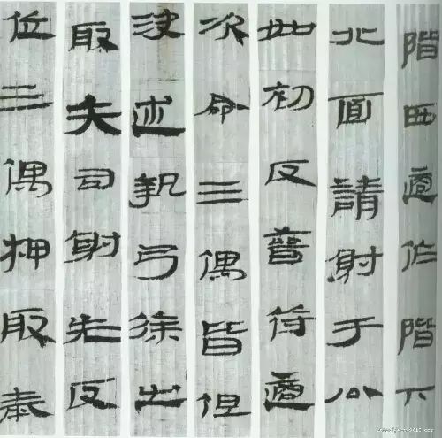 武威王杖诏令册此册约成于西汉成帝时期。它提供了汉代王杖诏书的格式,显示了诏书书体的特点。其字形普遍方正整饬,结体宽博,有官方文书矜持的风度。