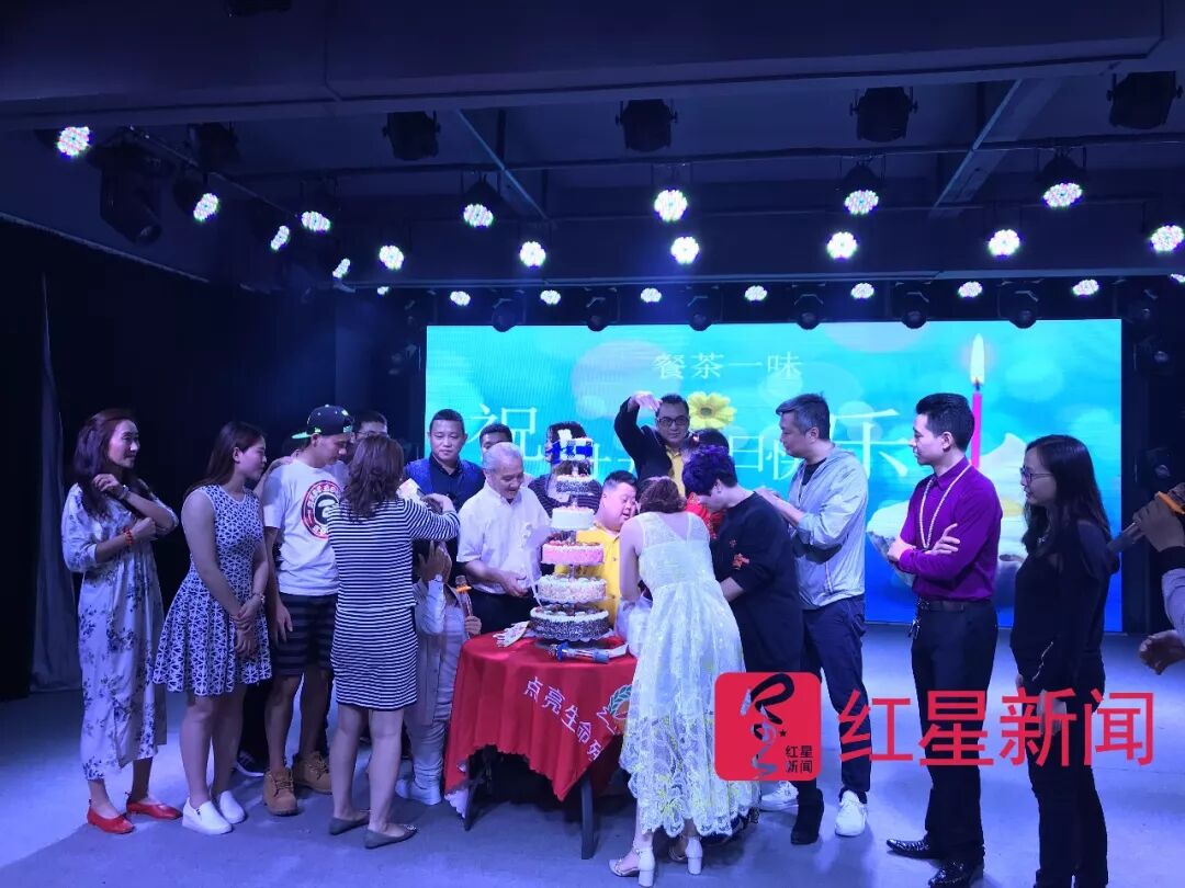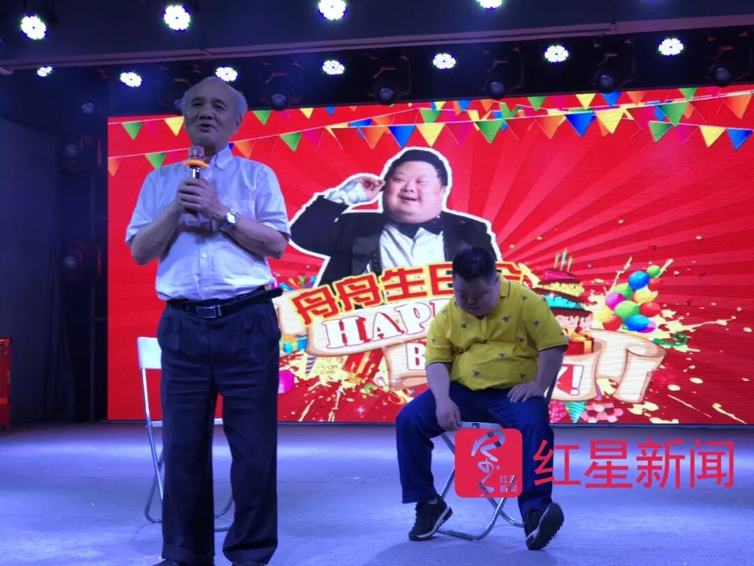 生日会在下午3点左右开始,原本三个人的生日,舟舟几乎占据了全部时间,其他两人只是在结束时一起上台切了蛋糕。开场,艺术团聋哑女孩一曲舞蹈后,胡厚培和舟舟被请上台,胡厚培在大家的提问中,几乎还原了舟舟40年的成长之路。
