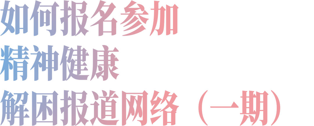 Dixon Chibanda医生在TED上的演讲:Why I train grandmothers to treat depression也正因如此,我们发起了“精神健康解困报道网络”,旨在报道国内外对于精神健康领域社会问题的解困方案——何时何地由谁针对什么问题提出了怎样的解困方案,此人是谁,此人为什么要这么做,此人最后是成功了还是失败了,又分别因为什么。我们既需要关注解困方案,也需要关注那些提出方案的解困者的故事。精神健康解困报道网络(一期)将试运行一个月时间,将聚焦目前国内精神健康公益领域较为关注的精神疾病污名化问题及其解困方案,网络成员会采取工作坊及共学的形式共同探讨上述议题,呈现问题,锁定解困者及其解困方案,横向比较,进行写作,讨论修改,最终各自完成一篇关于精神疾病污名化问题的解困报道。第一期主题