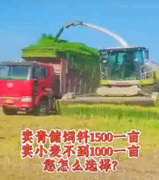 所以,你说,如果今天你是种麦子的农户,你是愿意收割小麦卖粮食,还是提前割了卖给车队当青储饲料?