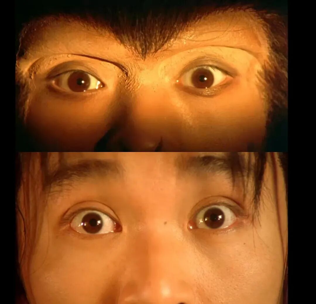 至尊宝他中了七伤拳,变成斗鸡眼。