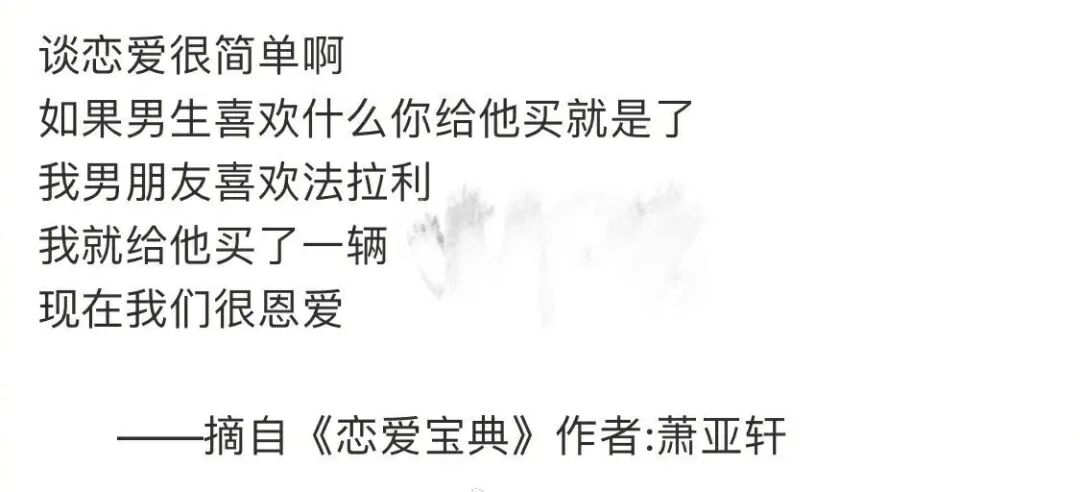 一烧就烧了半年之久,直到有朋友看不下去,提醒萧亚轩:“你男朋友和侯湘婷走的很近耶。”