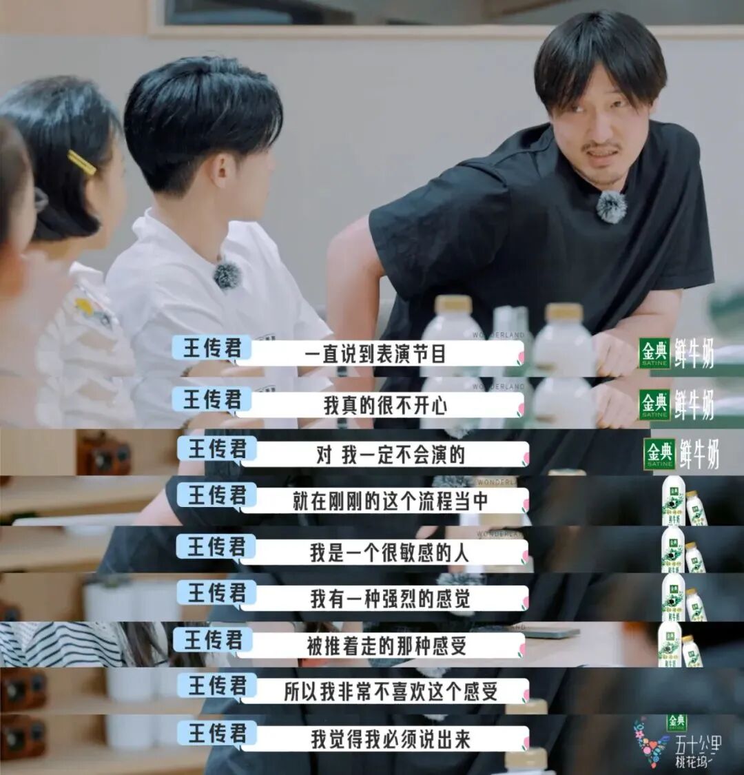 当其他人都不好意思拒绝,只能勉强答应下来的时候,王传君拒绝了宋丹丹的提议,并表示在开会之前自己一直很开心,直到听到要表演节目。
