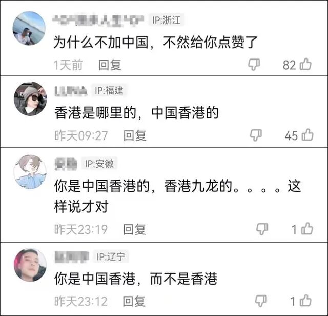 有网友表示,说香港的时候怎么能漏掉中国,应该是“中国香港”才对。