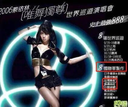 2006年,蔡依林开办《唯舞独尊》巡回演唱会,宣传文案上竟赫然使用“8国联军”这样的敏感字眼。