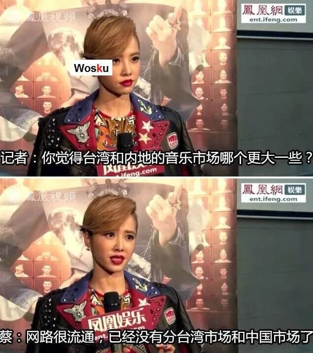 记者的措辞明明是内地,可到了蔡依林这里,就变成了台湾市场和中国市场。