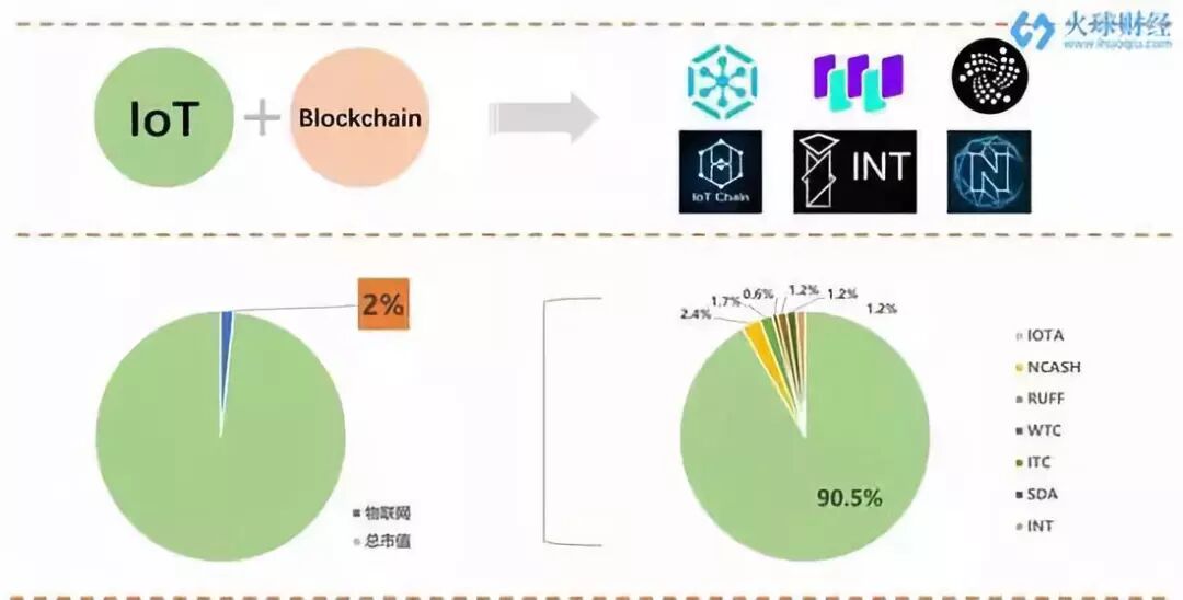 区块链 物联网板块目前总体市值有限,在数字货币市场占比约2%,在这2%的市值里,IOTA项目占比约90.5%,剩余10%的市值里面,占比比较大的有NCASH和RUFF两个项目。