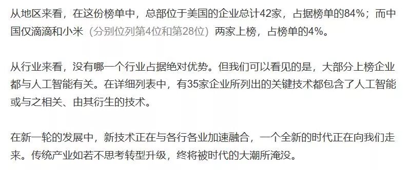 在这份榜单中,总部位于美国的企业总计42家,占据榜单的84%;而中国仅滴滴和小米(分别位列第4位和第28位)两家上榜,占榜单的4%。