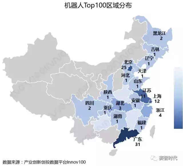 ▲ 机器人Top100区域分布