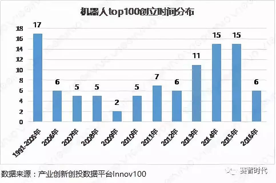 ▲ 机器人top100创立时间分布