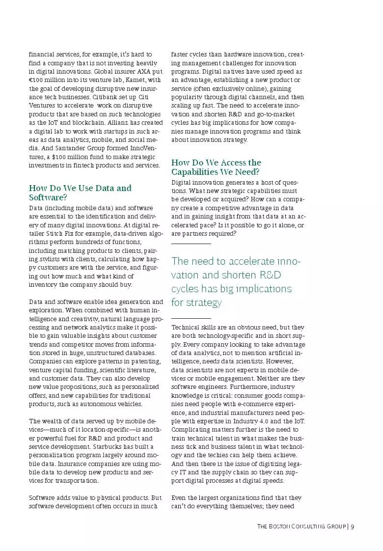 公司之间在很多领域存在巨大差距,这些公司表现出强烈的创新意识,认为自己很薄弱,但是创新的数字化方面差距尤为突出。这说明拥有有效数字化创新项目的公司正在变得更强大,而弱者则进一步落后。例如,强有力的创新者比上面讨论的四种数字相关创新以及一般技术平台更重要。对于公司如何积极地推行这些创新途径,还有更大的挑战。