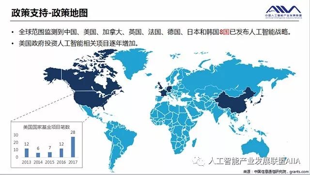 近年来人工智能热潮在全球催生了几千家人工智能企业,相对于通用技术和产品,更多企业专注于垂直行业的人工智能应用。2006至2016年,全球人工智能专利申请量由1.5万件增长到4.6万件,我国人工智能专利申请量由0.2万件增长到1.8万件,占全球比重由14%增长到39%。