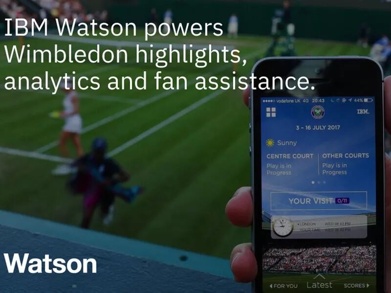 2017年,温布尔登网球锦标赛使用IBM Watson进行比赛视频编辑,Watson可以分析运动员面部表情、动作、人群噪声等数据,编辑比赛视频,用户可以在温布尔登网球俱乐部官方网站、APP和社交媒体上观看。