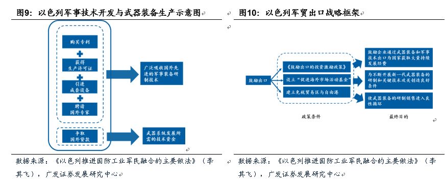 以色列:以武立国,高度重视国防工业,用军事技术带动国民经济发展。以色列建国之初即以国防工业为立国之本,优先发展国防高科技,以国防工业带动国民经济发展。以色列军民融合分为两个阶段,第一阶段是武器研发单位转为国有军工集团,并给予自主经营权,同时开始民品生产;第二阶段将军工企业进行私有化改革,鼓励并购重组,增强企业竞争力。
