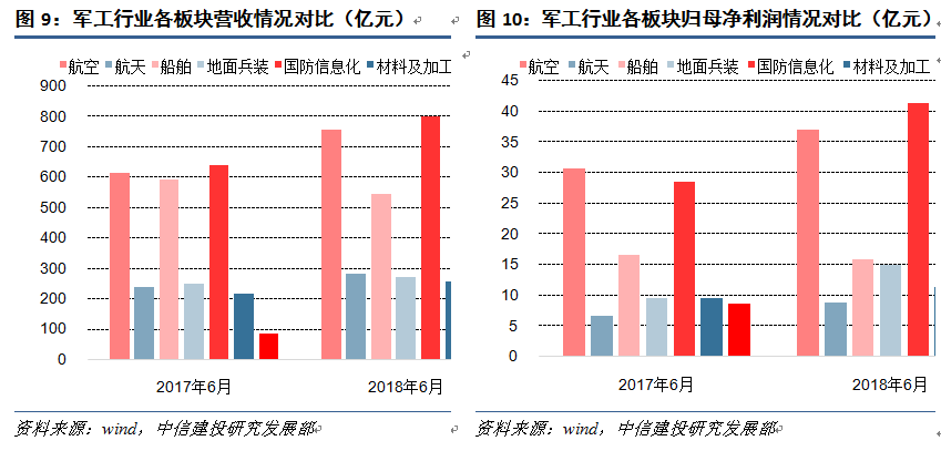 预收账款、存货等指标提升表明下游需求持续旺盛。2018年上半年,军工板块160家上市公司存货净额总量为2825.13亿元,较去年同期增长6.47%;预收账款总额为789.68亿元,较去年同期增长38.39%。我们认为,军改完成后军品订单持续释放的假设已经得到验证,预收账款的形成主要来自于军方订单预付款和产业链下游环节,充裕的军品订单将保障军工板块上市公司未来业绩持续释放。