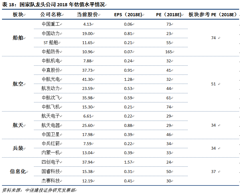 2018年军工央企资本运作或仍以企业类资产为主,院所类资产注入已渐行渐近。首批院所转制试点预计于2018年底之前完成,多数相关院所与上市公司关联程度较低,预计2018年军工央企资本运作或仍将以企业类资产为主,但随着军工科研院所改制不断出现里程碑式进展,院所类资产注入预期也愈发强烈。我们认为,基本面良好、体外资产较为优质、且有明确注入预期的上市公司值得重点关注,包括中直股份、中航机电、国睿科技、航天电子等。