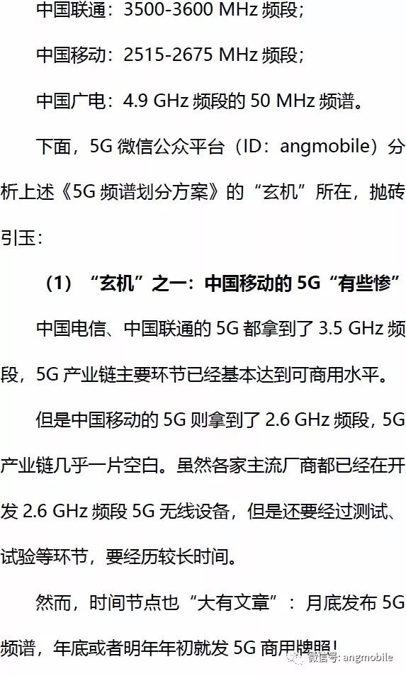 四是据说,为了保证我国实现“5G引领”,拿到优势频段的那些运营商,是要承担相应的义务和责任的,比如国家要求你在某个时间范围内建设多少5G基站、发展多少5G用户,你就要按时做到多少。拿到好频段,就要担起“5G引领”的重任。而没有拿到好频段的运营商,责任就是不同的。
