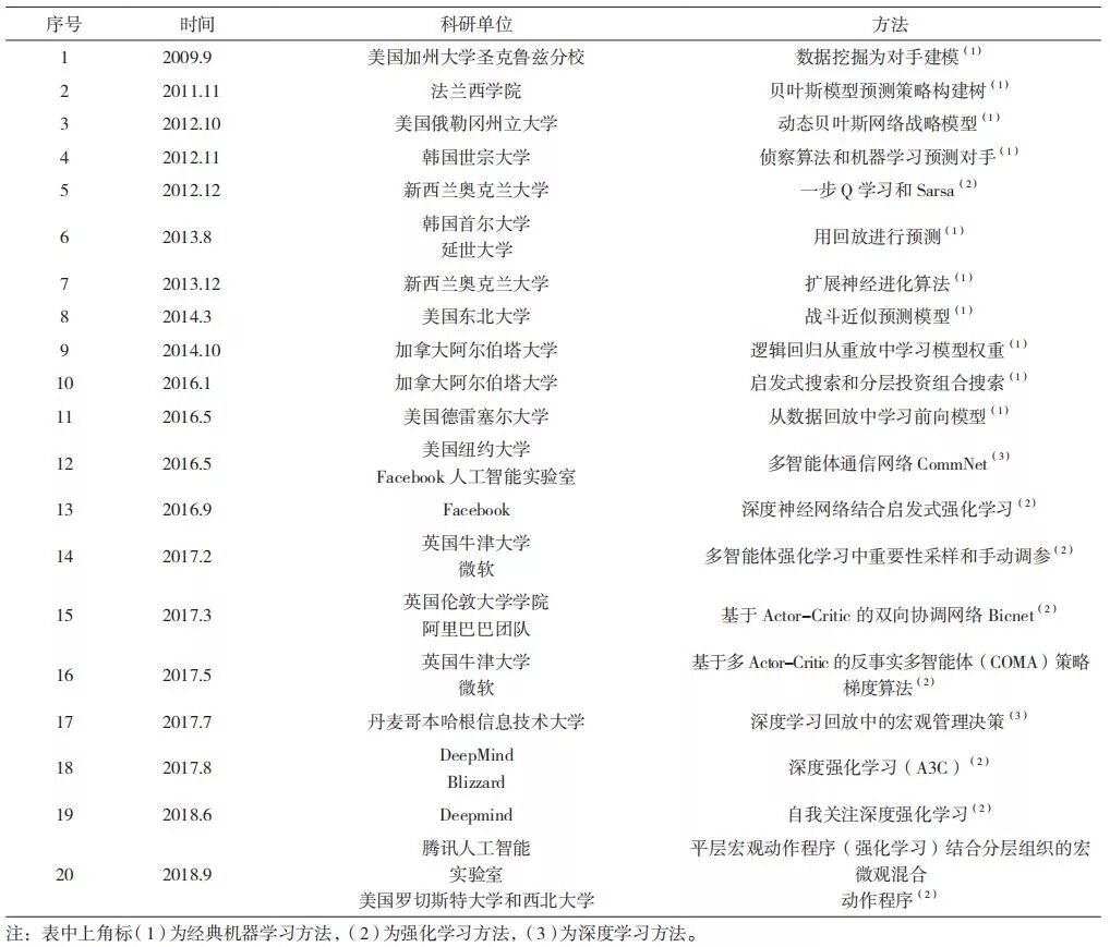 表1 星际争霸主要研究单位和方法