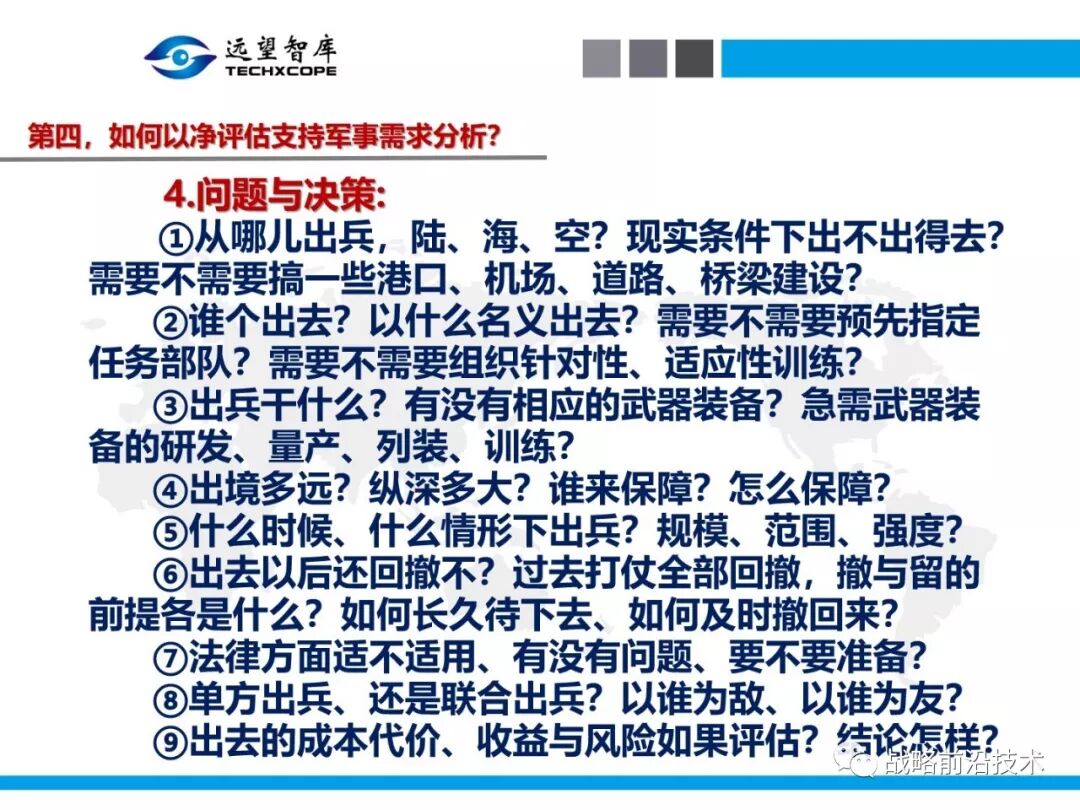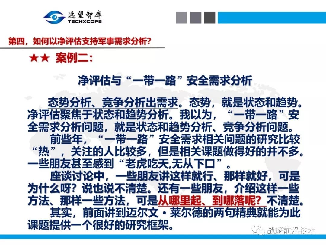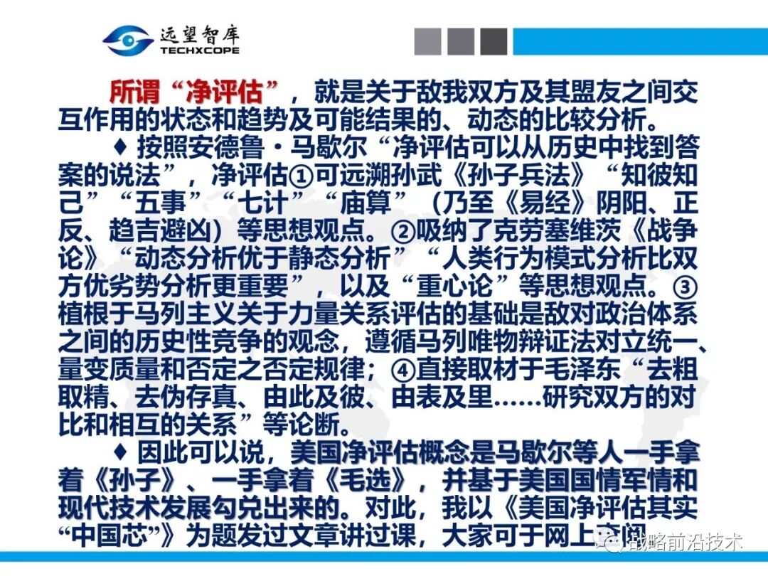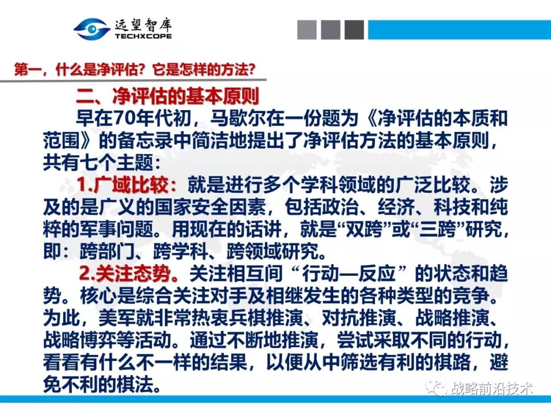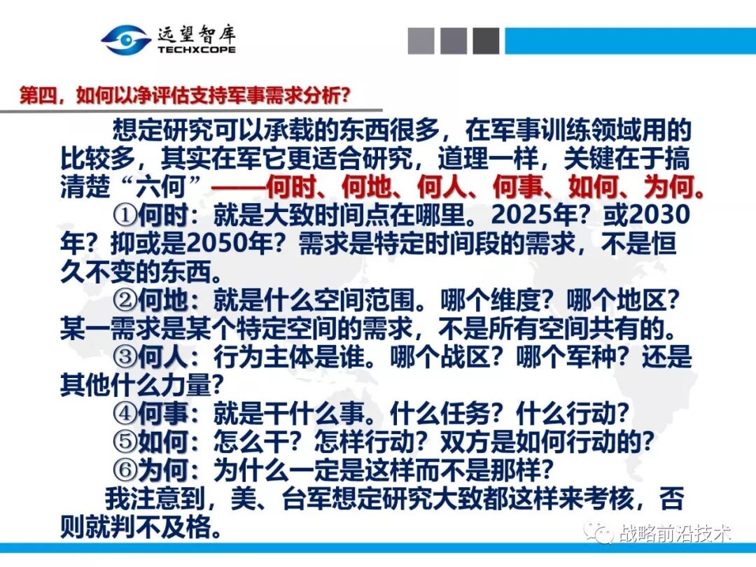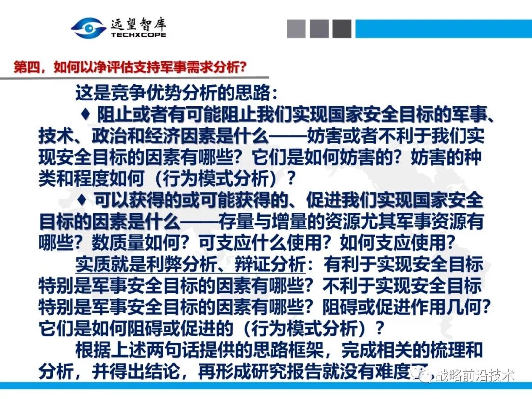 7月25日下午,远望智库以“净评估与军事需求分析问题研讨”为主题,在北京中航广场如期举办了第八期“净评估+”学术沙龙。来自相关领域的专家主要围绕以下三个问题进行了研讨:第一,什么是净评估?它是怎样的方法?第二,什么是军事需求?其常见分析方法有哪些?第三,如何在军事需求分析中应用净评估?应净评估研习者要求,现将本期学术沙龙开始时的引导发言(主旨发言)PPT部分稍加整理、增强可读性,并予以发布,仅供参考。