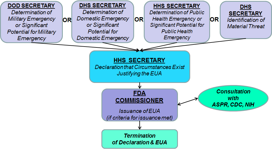 在原法案(§564 of the FD&C Act)框架下,允许FDA在军事应急状态使用EUA,允许使用未经批准上市的医疗产品,或已批准上市的医疗产品用于未被批准适应证,应对各种类型的威胁,降低各种威胁生命的特殊风险。
