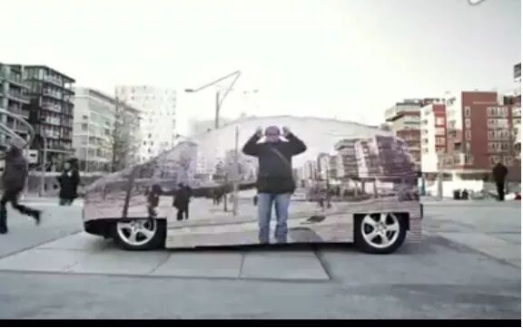 日本于2003年进行的主动式光学景象隐身试验,即是通过投影仪再现背景图像达到透明隐身的效果。2011年英国BAE系统公司在CV90装甲车上加装“电子墨水”系统,通过将战车周围地形、颜色、线条和形状投射至战车,使战车表面图像随周围环境的变化实时发生改变,其概念图如图2所示。德国也曾在奔驰车上贴覆柔性发光二极管屏幕进行动态隐身演示,如见图3所示。这种基于显示背景的隐身理念,具有实时动态特性,技术较为成熟,但存在观测角度变化时,显示屏的图像与背景会存在位移差的问题。