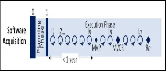 软件采办路径是为了促进向用户快速且迭代地提供软件能力(例如:软件密集型系统和/或软件密集型组件或子系统)。该途径集成了现代软件开发实践,包括敏捷软件开发、“开发、安全和运行”(DevSecOps)理念和精益实践等。包括作战用户、开发和作战测试人员、软件开发人员以及网络安全专家在内的小型跨职能团队,利用企业服务来快速、迭代地交付软件,以满足最高优先级的用户需求。这些以任务为中心的政府与工业部门合作团队利用自动化工具来迭代完成对软件的开发、构建、集成、测试、生产、认证以及在作战环境中的部署。图4说明了软件密集型采办路径。