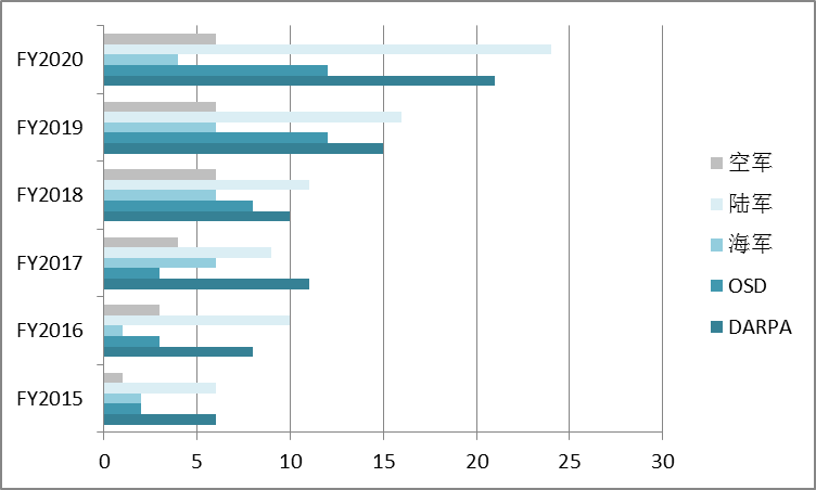 图5 美国国防部各机构2015~2020财年人工智能科研预算经费投入