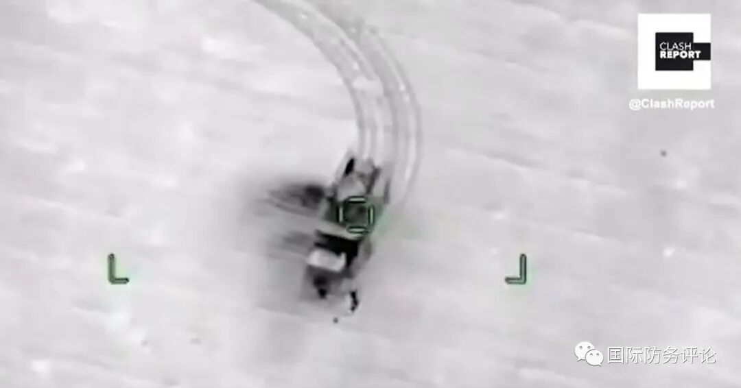 下面分享几张国民军防空兵在“铠甲S-1”内操作,击落无人机的图片,可以明显观察到现代化防空系统探测能力的强大与操作的便捷性。不过到了今年四月份,民族团结政府发起反攻,国民军一败涂地。到了五月份,国民军的大溃败中,短时间内就有5套“铠甲S-1”被土耳其的TB-2击毁,至少有一套在雷达工作中被命中,但更多的是在运输/补充弹药时被击中。“铠甲S-1”本身对低速目标有优势,可是利比亚缺乏防空预警体系,每辆车都是单打独斗,缺乏配合。虽然前期击落不少TB-2无人机(同时也击落了不止一架自家的翼龙)但在撤退中互相没有掩护,甚至有的防空系统还在牵引车上就成了无人机的靶子。而在双方激烈争夺的Watyah机场,国民军将“铠甲S-1”藏匿在机堡里但还是被TB-2炸毁,而且残骸被民族团结政府所缴获,拉到的黎波里游街示众。如果说叙土之间是局部冲突,利比亚那边是非正规军的小打小闹,那么今年9月末爆发的新纳-卡战争,可就是无人机与地面防空系统的全面对决了。9月27日亚美尼亚和阿塞拜疆在纳-卡地区战火重燃,这两个地处南高加索,长期以来不被人们所关注的国家,因为爆发了武装冲突而迅速登上各大媒体头条。阿亚两国动用的武器之多,交战激烈程度空前,并且双方都利用社交媒体发布了大量清晰的战地视频。其中,阿塞拜疆方面大量使用查打一体式无人机和多种型号的自杀式无人机,有效打击了亚美尼亚军队/纳卡国防军的防空设施。于当日发布的资料来看,阿塞拜疆至少摧毁了6套萨姆8(9K11)防空系统和3套萨姆9“箭10”。这些系统曾是苏军摩托化部队防空兵的主力装备,如今被TB-2这种性能平平的攻击无人机挨个点名。在其后,阿塞拜疆依靠土制无人机,成功的压制了亚美尼亚/纳卡国防军的防空火力,并且在9月30日以来,无人机已经开始攻击亚军的补给车辆和装甲单位,这将大大削弱亚军地面部队的实力。(一辆亚美尼亚的2S3自行榴弹炮被无人机命中前的的瞬间)